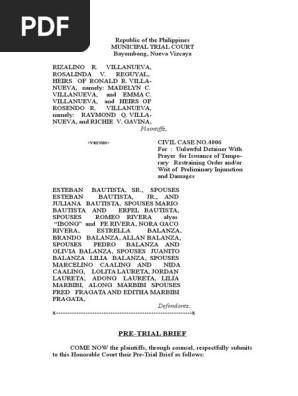 Pre Trial Brief Docx Lawsuit Social Institutions