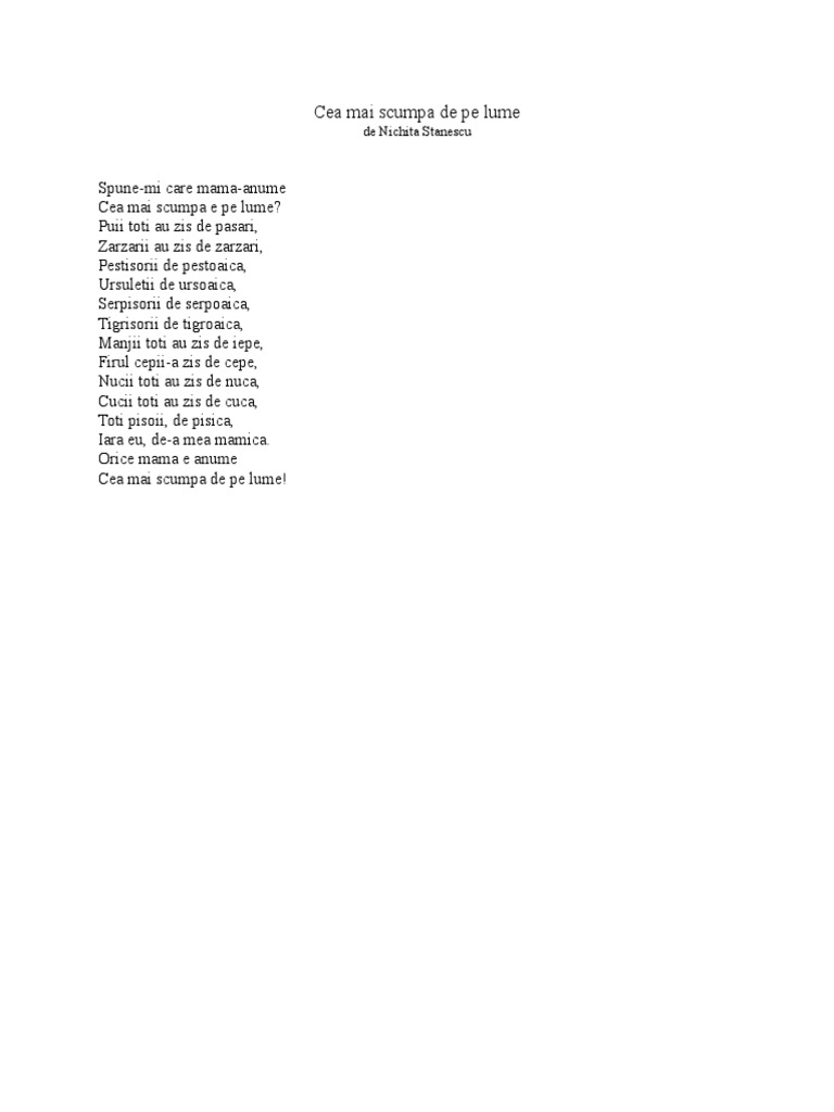Nichita stanescu spune mi care mama anume cea mai scumpa e pe lume.