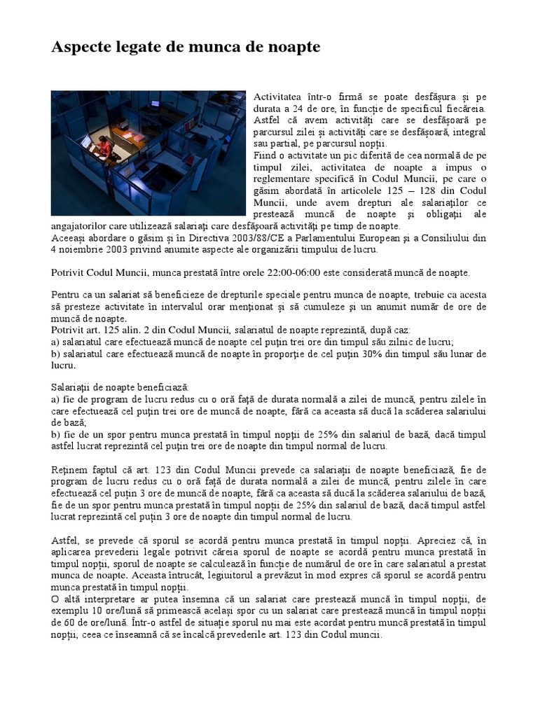 Codul Muncii Munca De Noapte