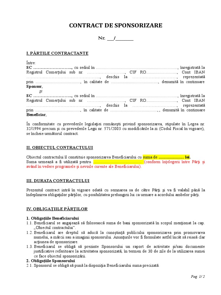 Contract De Sponsorizare Sponsor Commercial Private Law
