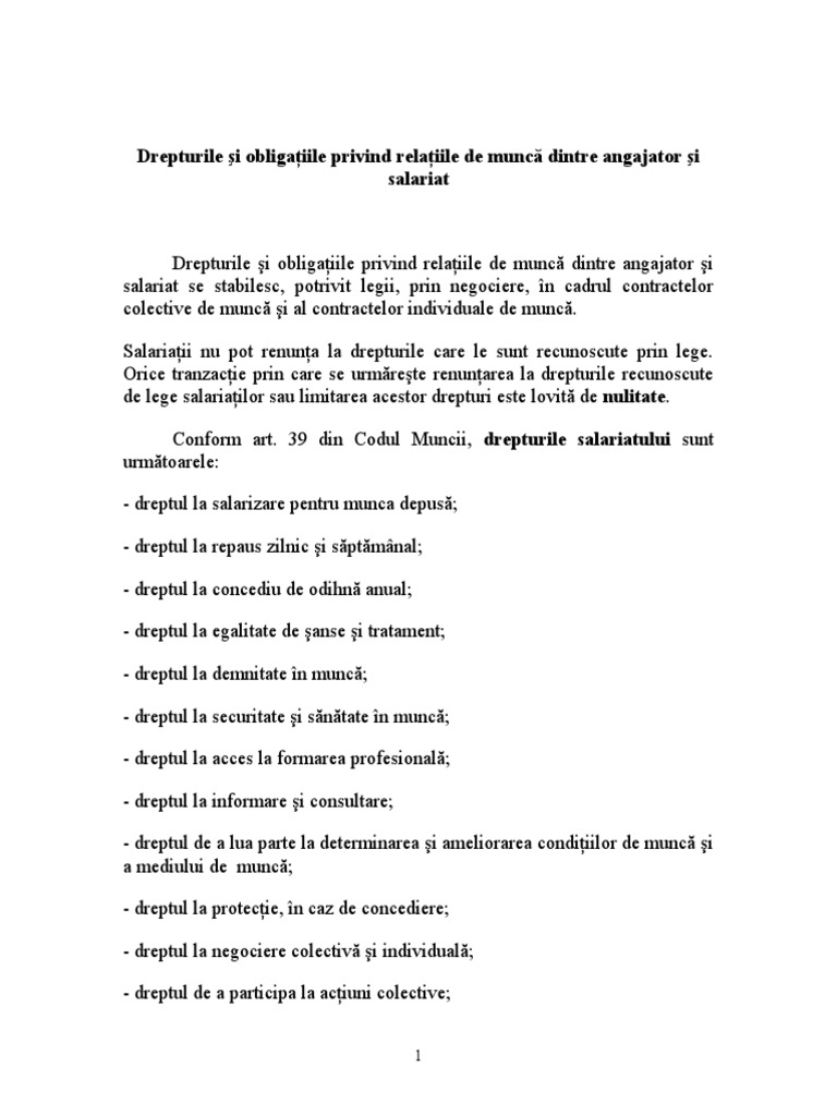 Drepturi Si Obligatii Ale Angaj