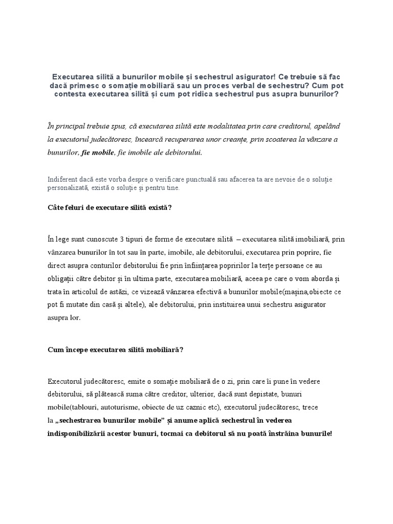 Executarea Silită A Bunurilor Mobile și Sechestrul Asigurator Tot Ce Trebuie Să știți Termene Ro