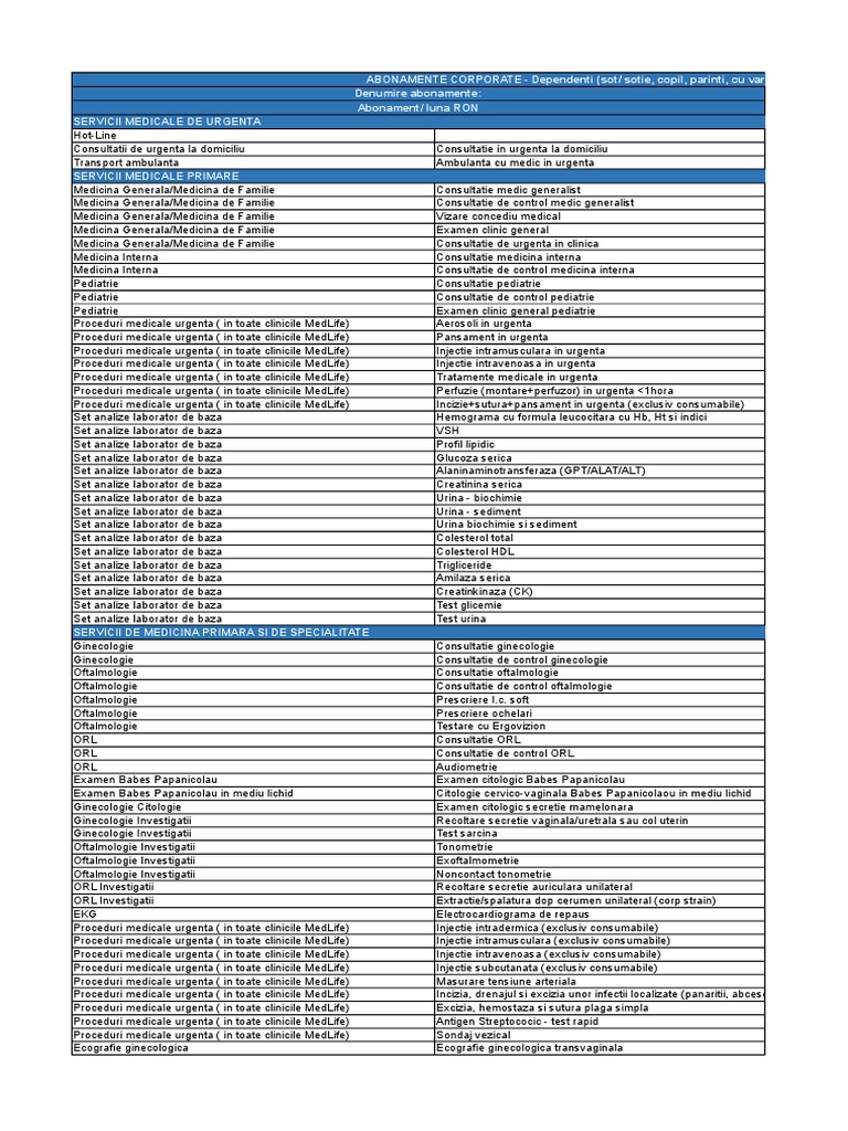 Abonamente Si Preturi Pentru Membri Familie Medlife 1