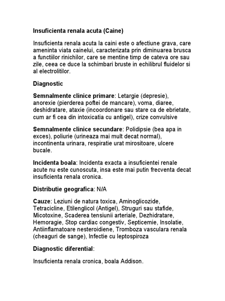 Insuficienata Renala Acuta Si Cronica La Caine Hari Pet Cabinet Medical Veterinar