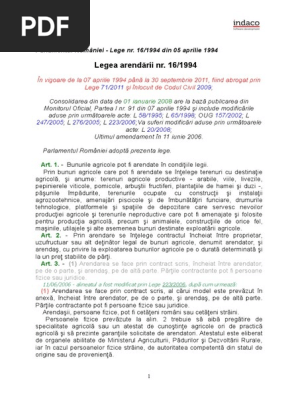 Legea Arendarii Nr 16 1994 Actualizata La 5 03 2008