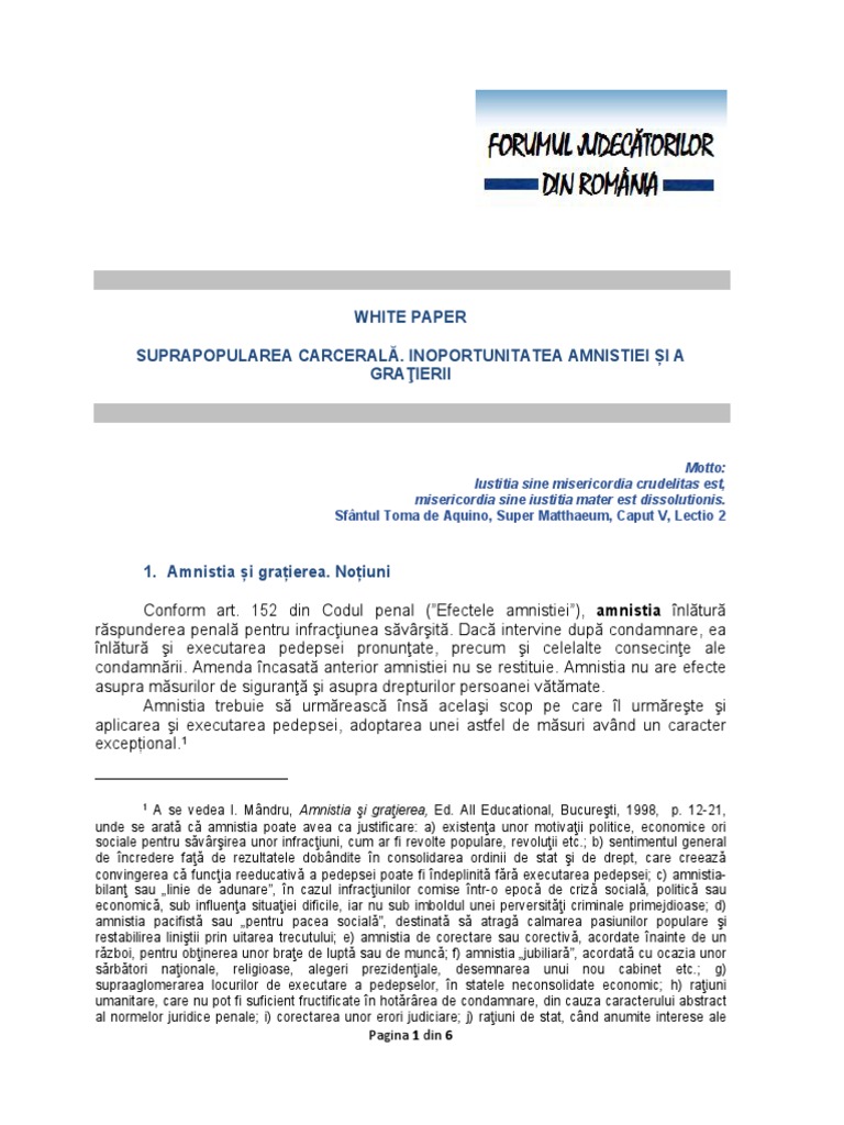 White Paper Suprapopularea Carcerală Inoportunitatea Amnistiei și A Graţierii