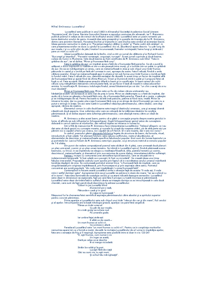 Referat Luceafarul De Mihai Eminescu Romana 17193 Regielive