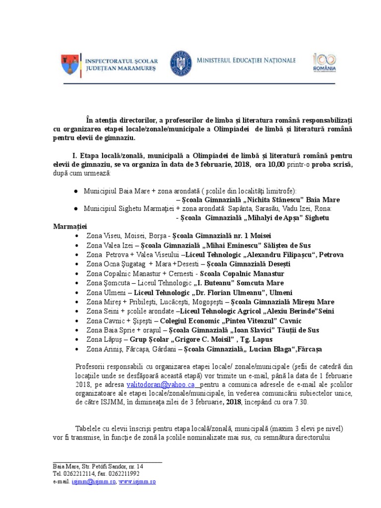 Precizări Legate De Etapa Judeţeană A Olimpiadei De Limba Si Literatura Romană 17 03 2018 Docendo Discimus