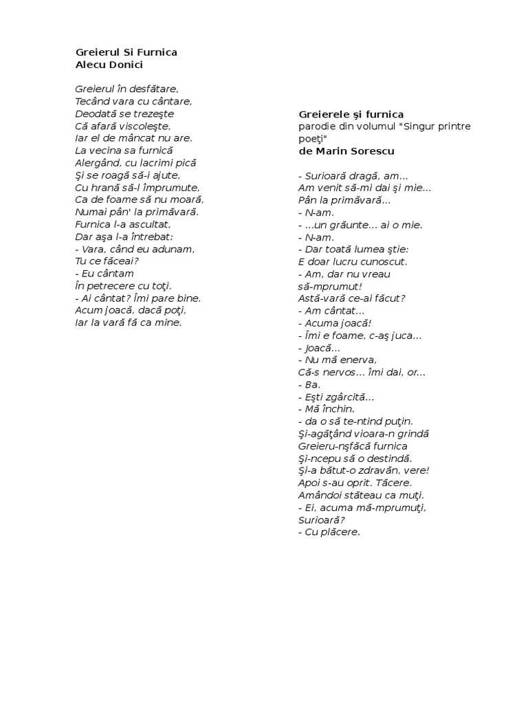 Greierele Si Furnica Poezie